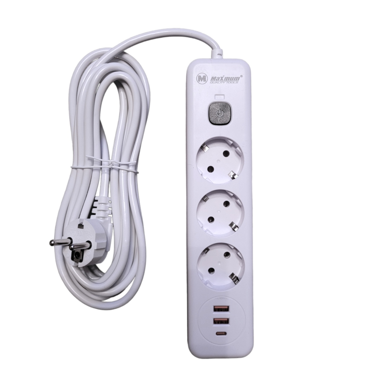 Колодка каучуковая на 3 розетки с защитными красными крышками, IP44,16A, 3500Вт "MAXIMUM" MX 17320