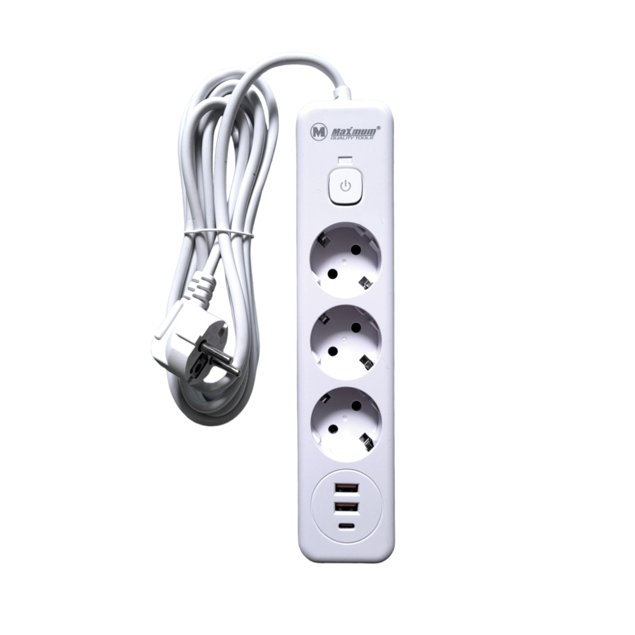 Колодка каучуковая на 3 розетки с защитными красными крышками, IP44,16A, 3500Вт "MAXIMUM" MX 17320