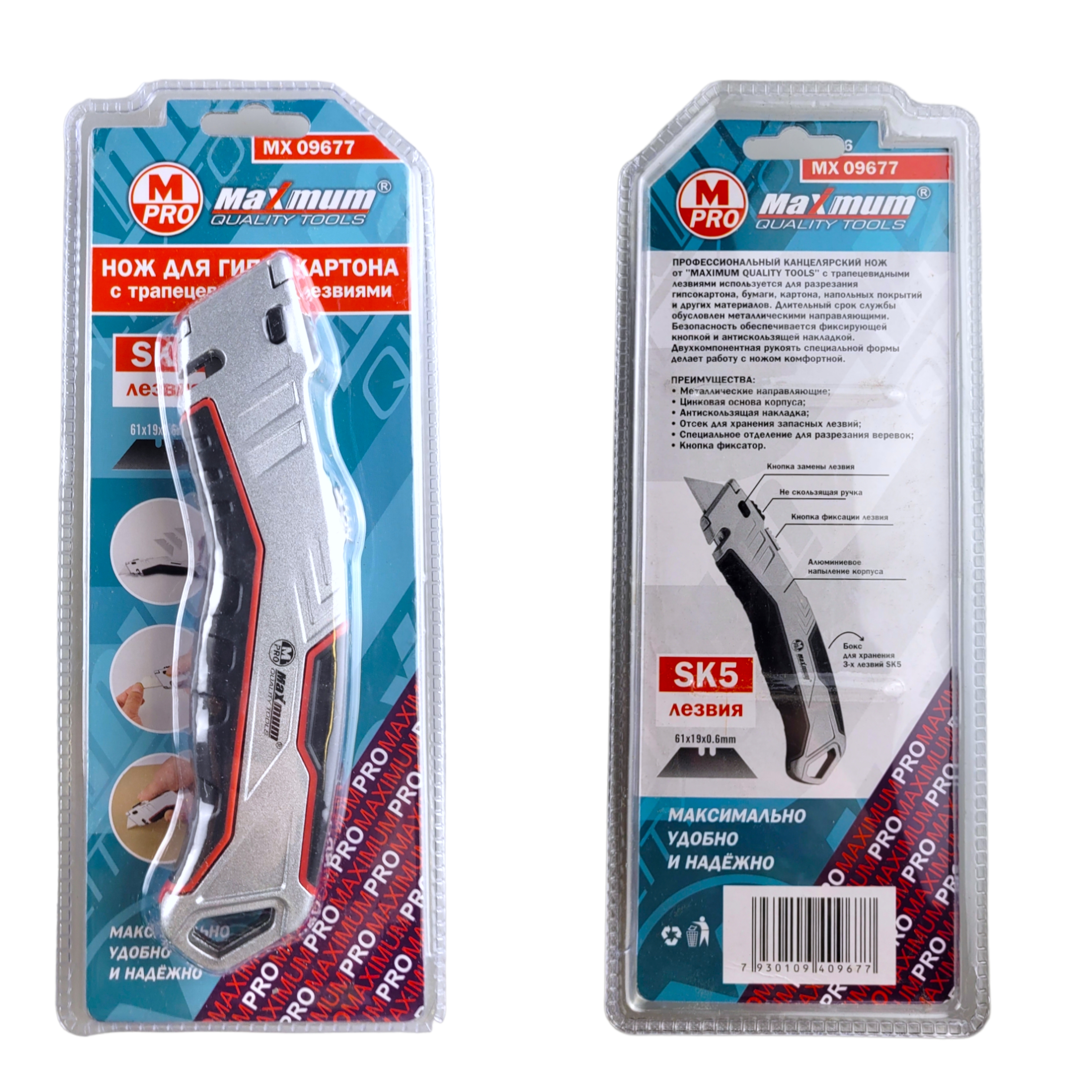Нож для гипсокартона усиленный с кнопкой для быстрой смены угла резки оборудован системой Quick Change для быстрой смены лезвий от "Maximum Quality Tools" отлично подойдет для работ по реке гипсокартона, бумаги, обоев, картона, ковролина, линолеума и т.п. Нож оборудован специальным отделением для разрезания веревок.