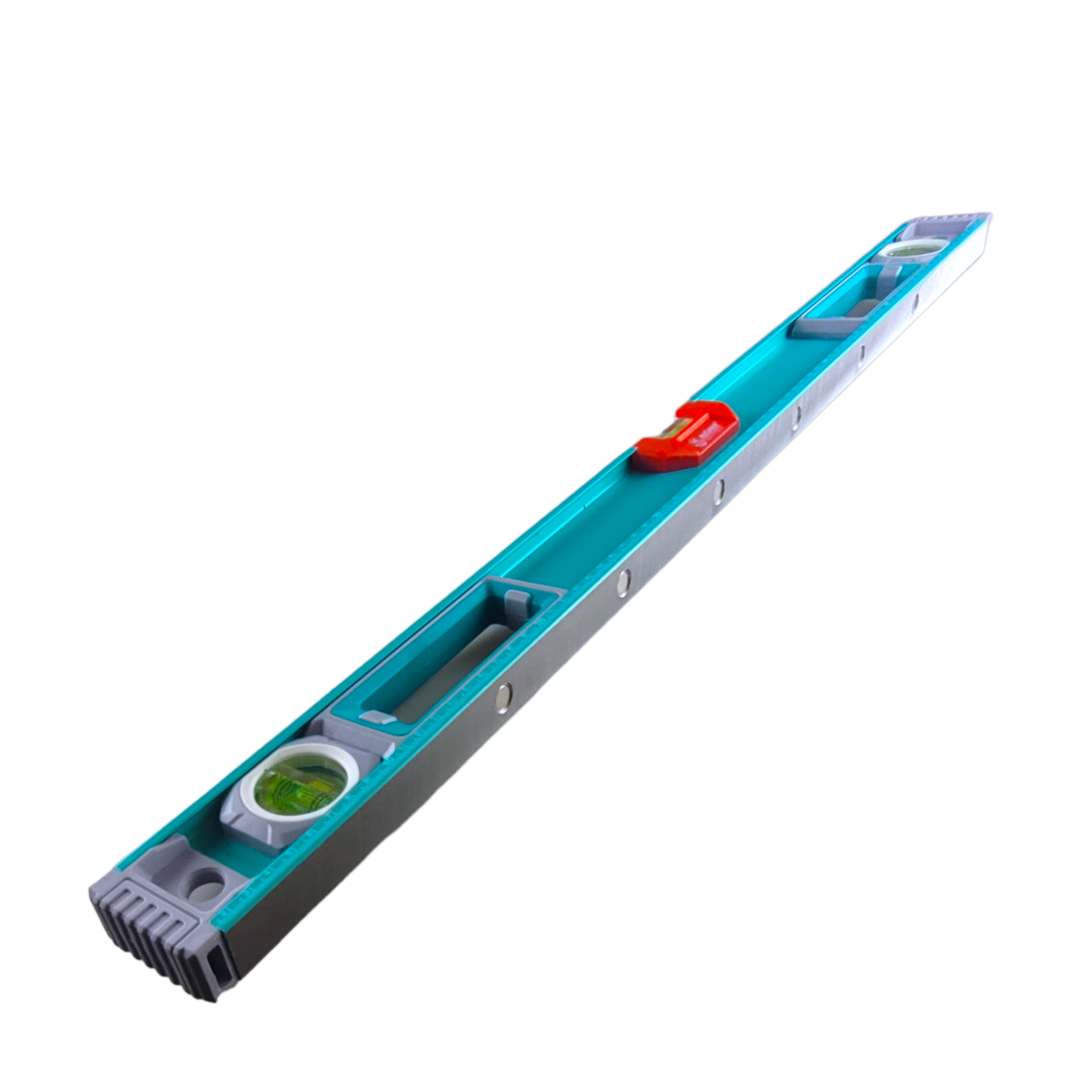 Пузырьковый брусковый уровень 800x50x25 мм от «MAXIMUM Quality Tools» с тремя ярко салатовый глазками из противоударного пластика создан для измерения углов наклона деталей и плоскостей. На корпусе из аллюминия толщиной 2,7 мм имеется четкая разметочная шкала для измерения размеров предметов. Колбы защищены от ультрафиолетовых лучей и обеспечивают широкий угол обзора без искажения показаний.