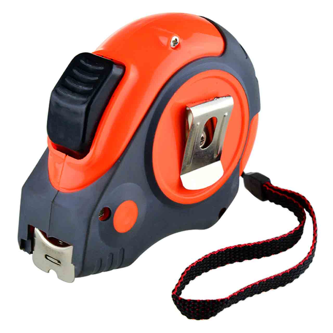 Рулетка имеет ремешок для ношения на запястье и металлическую клипсу для крепления на сумке или поясе