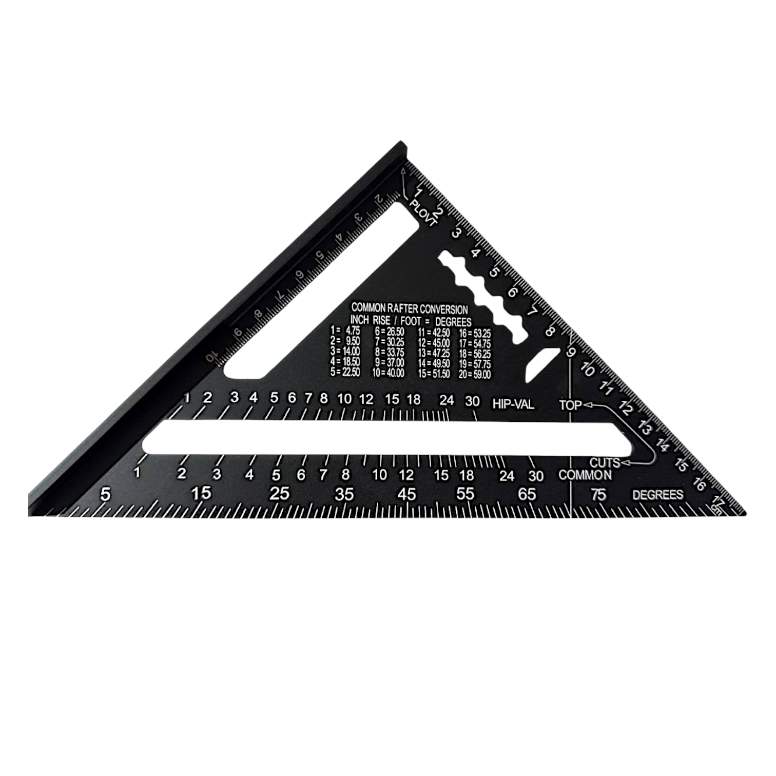 Инструмент выполнен из алюминия, поэтому он лёгкий и прочный. Размеры треугольника 18 см х 18 см х 26см.