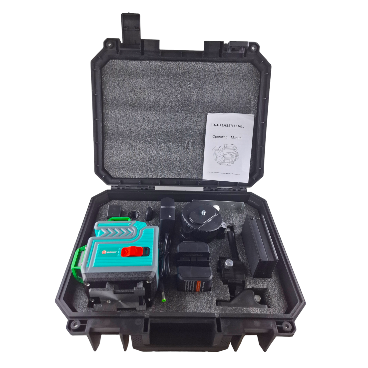 Лазерный уровень/нивелир 4D от "Maximum Quality Tool" - это высокоточный прибор, который станет просто необходимым помощником при заливке полов, разметке дверных и оконных проёмов, монтаже навесных потолков, а также любых плиточных работах. Лазерный уровень удобно лежит в руке, а также устанавливается на штатив с резьбой 1/4". Длина волны лазера 6.35 нм. Горизонтальная и вертикальная точность +- 1мм/7 м. Ширина линии 2мм/5 м. Уровень оснащен световой и звуковой индикацией, сигнализирующей об отклонении от горизонтали или низком уровне заряда батареи. Диапазон автоматического выравнивания <+ 3⁰. Рабочая температура -10 до +50 ⁰С. Длительность работы составляет до 5 часов. Тонкий и яркий зеленый луч хорошо виден на любой поверхности. Нивелир оснащен режимом ожидания и автоотключением. Данный прибор позволяет обеспечить дальность внутренних работ до 40 метров. 2 батареи Li-Ion хорошо держат заряд.