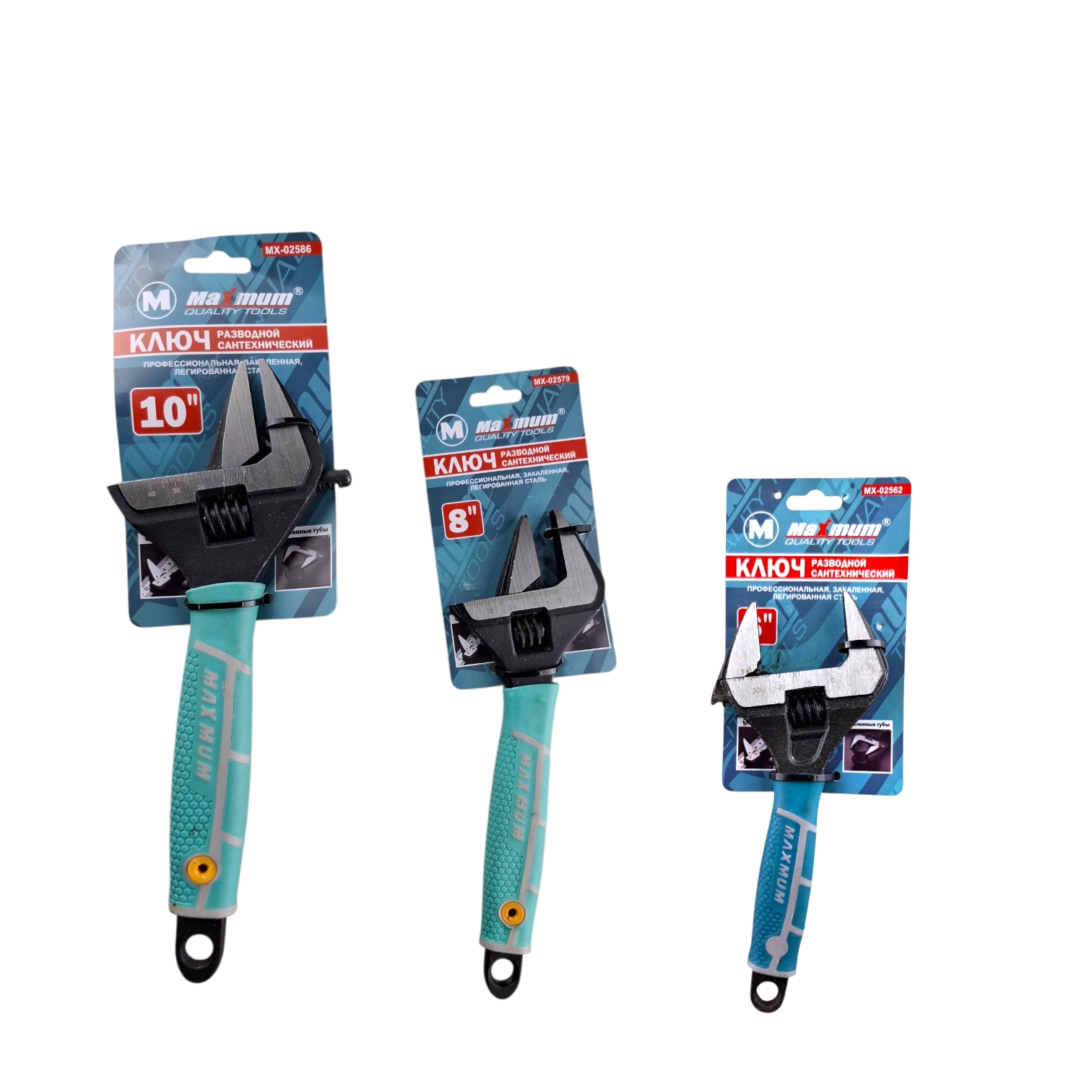 Ключ разводной 200 мм с двухкомпонентной рукояткой,тонкие губки,фосфатирован,МХ5577-8,MAXIMUМ (2857)