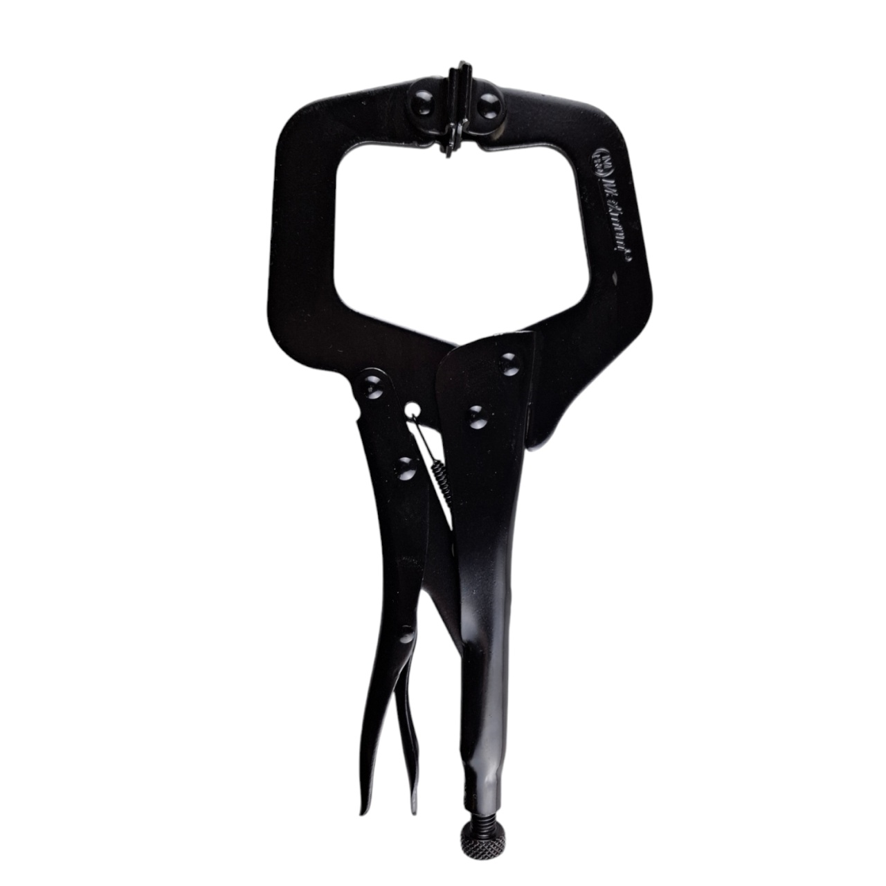 Мощные зажимные клещи длиной 280 мм с фиксатором и подвижными губками. Идеальный помощник для сварки, столярных и слесарных работ, обеспечивающий надежную фиксацию деталей сложной формы.