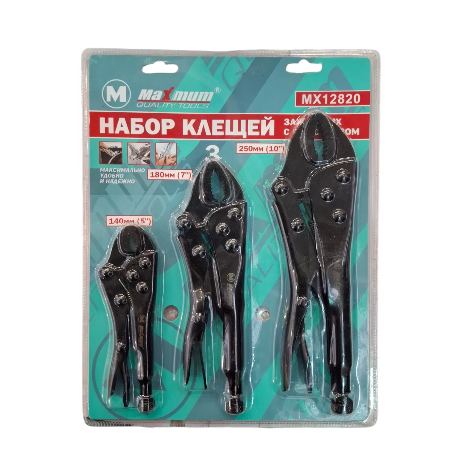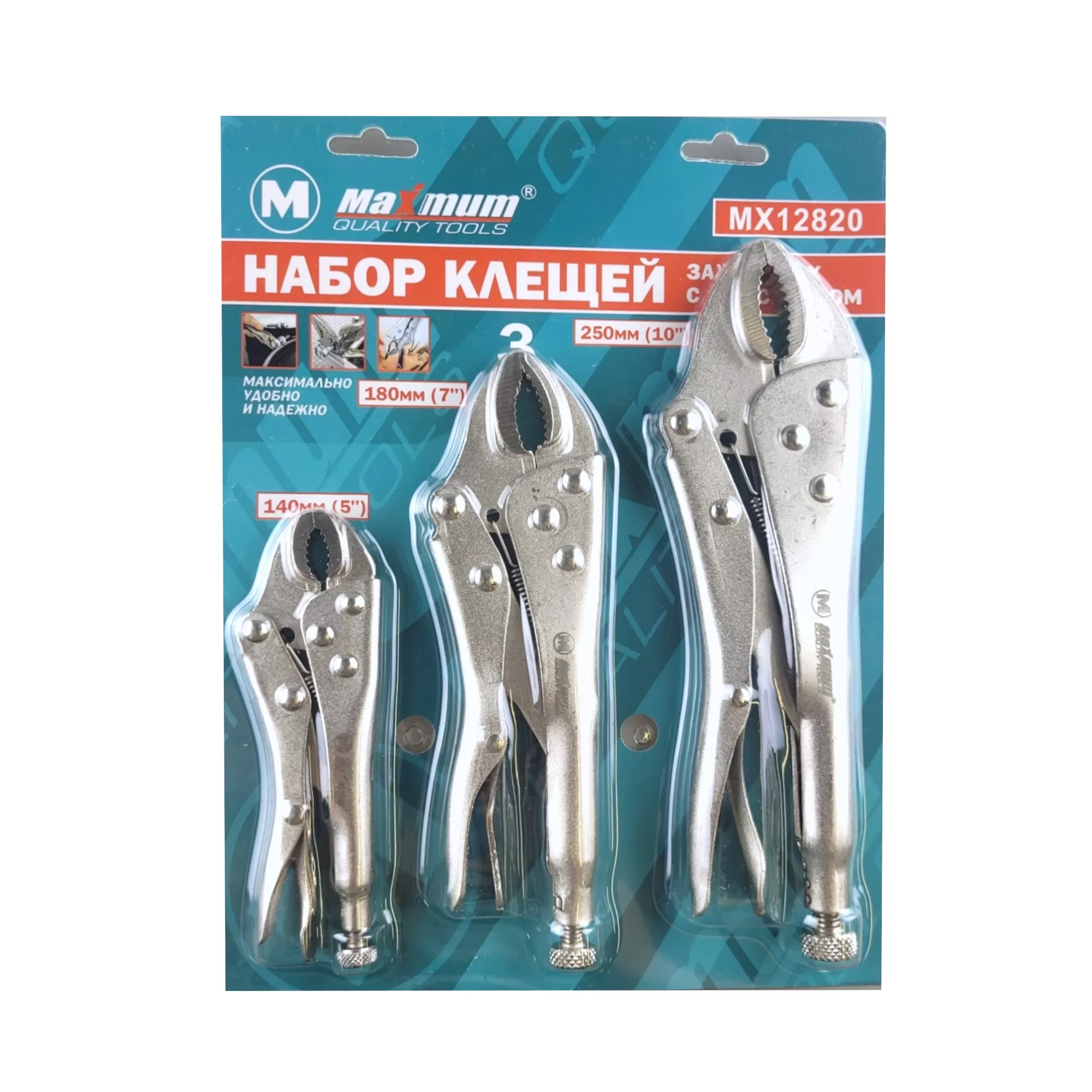 Набор клещей зажимных Cr-V с фиксатором 140/180/250 мм, хромированные, "MAXIMUM" 188 MX 12820