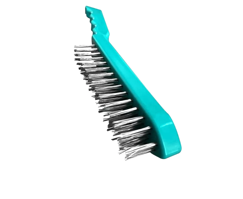 Щетка ручная с металлическим ворсом 30 мм в 6 рядом от "Maximum Quality Tools" изготовлена из стальной проволоки и прочного ABS пластика. Анатомическая форма ручки дополнена отверстием для хранения. Длина щетки с металлической щетиной 14 см, ширина 4 см. Общая длина 27 см. Щётка отлично подойдёт для снятия лакокрасочных покрытий с изделий из металла и дерева, а также для зачистки поверхностей перед и после сварки.