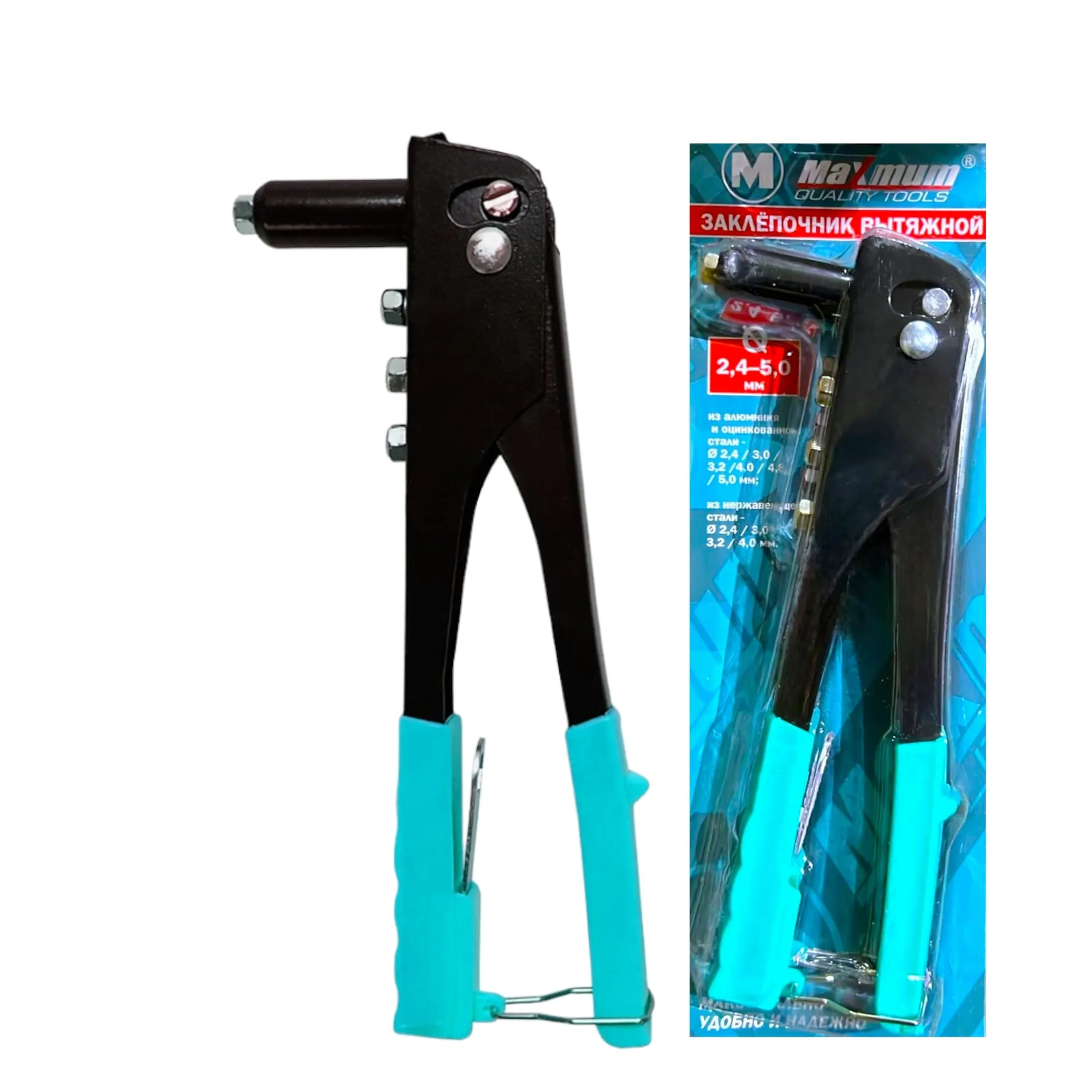 Из-за отсутствия возвратной пружины заклёпочник имеет возможность удерживать заклепку в инструменте без сжатия ручек перед ее установкой.