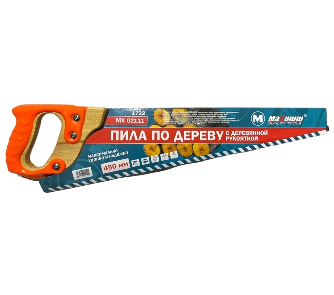 Пила по дереву с деревянной рукояткой 400 мм, 1722, "MAXIMUM" MX 02104