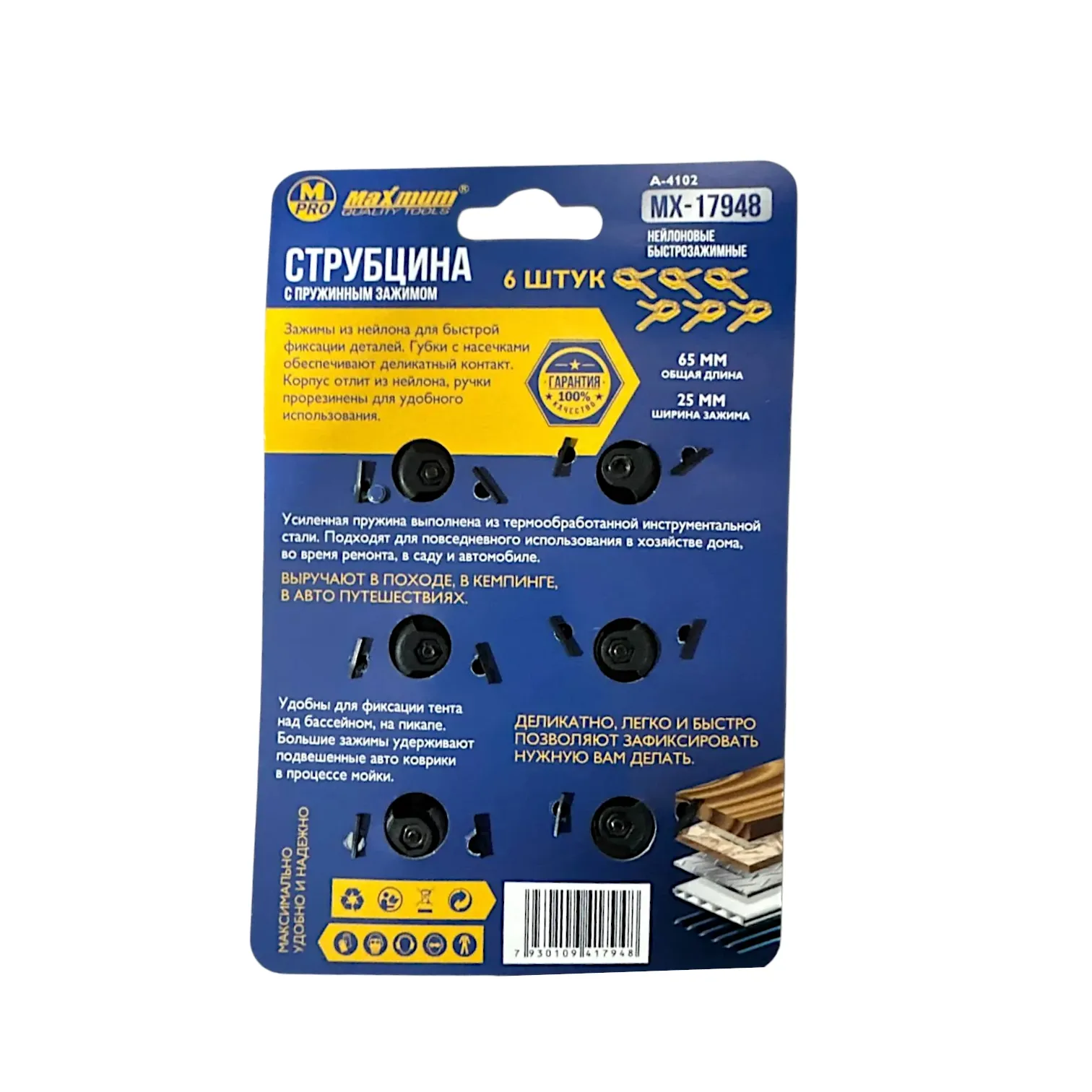 Струбцина автоматическая 150×60 мм, 6", F-образная, с фиксатором и кнопкой сброса, "MAXIMUM" MX 0603