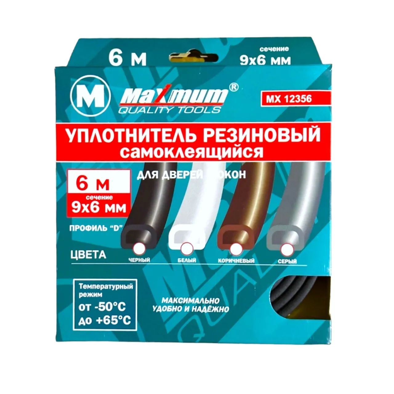 Уплотнитель резиновый самоклеящийся, сечение 14х12 мм, 40 м, профиль "D", черный, «Maximum» MX 11434