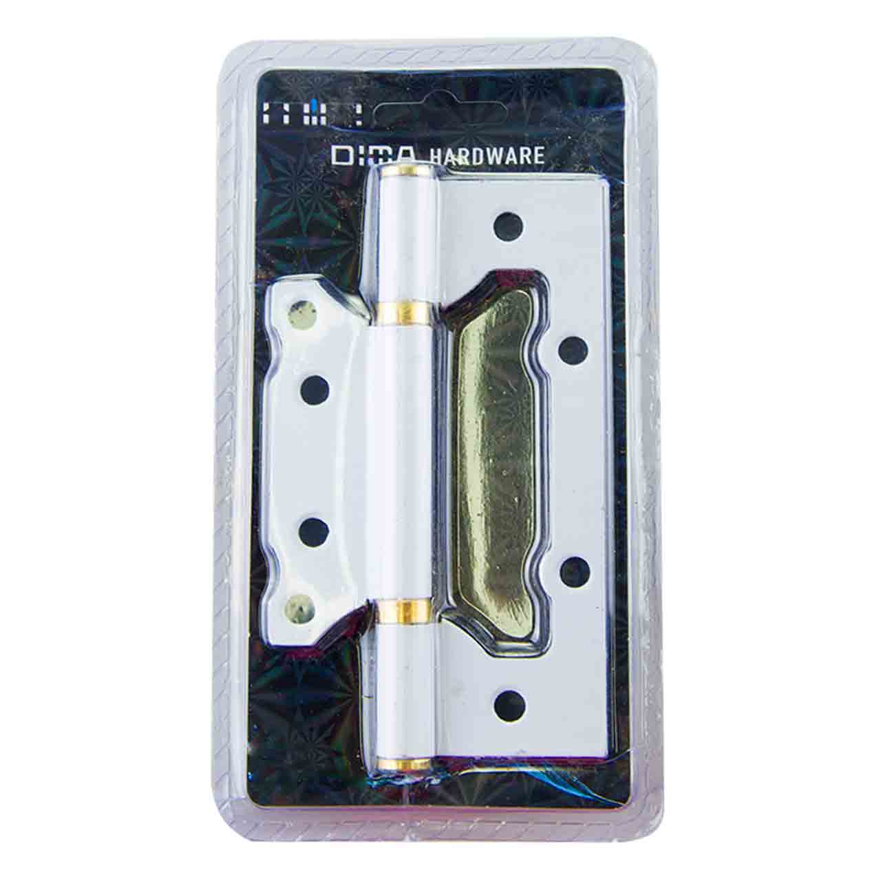 Накладные петли состоят из двух неразъемных частей (карт). Одно полотно петли накладывается на торцевой стороне двери, другое полотно накладывается к дверной коробке. Белые накладные петли не требуют врезки, установка таких петель не трудоемка и не требует специальных навыков и оборудования. Стальные петли толщиной 2 мм и покрыты эмалью и лаком белого цвета.