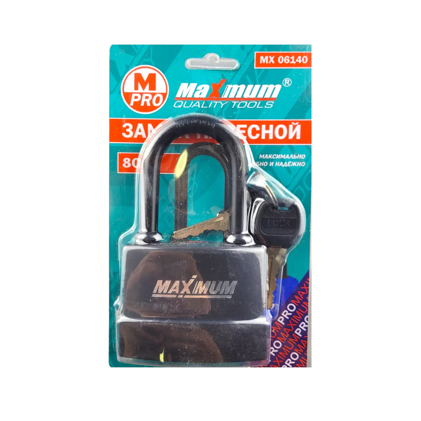 Замок навесной всепогодный 80 мм, с длинным ушком,автоматическое запирание,"MAXIMUM" MX06140 (3481)