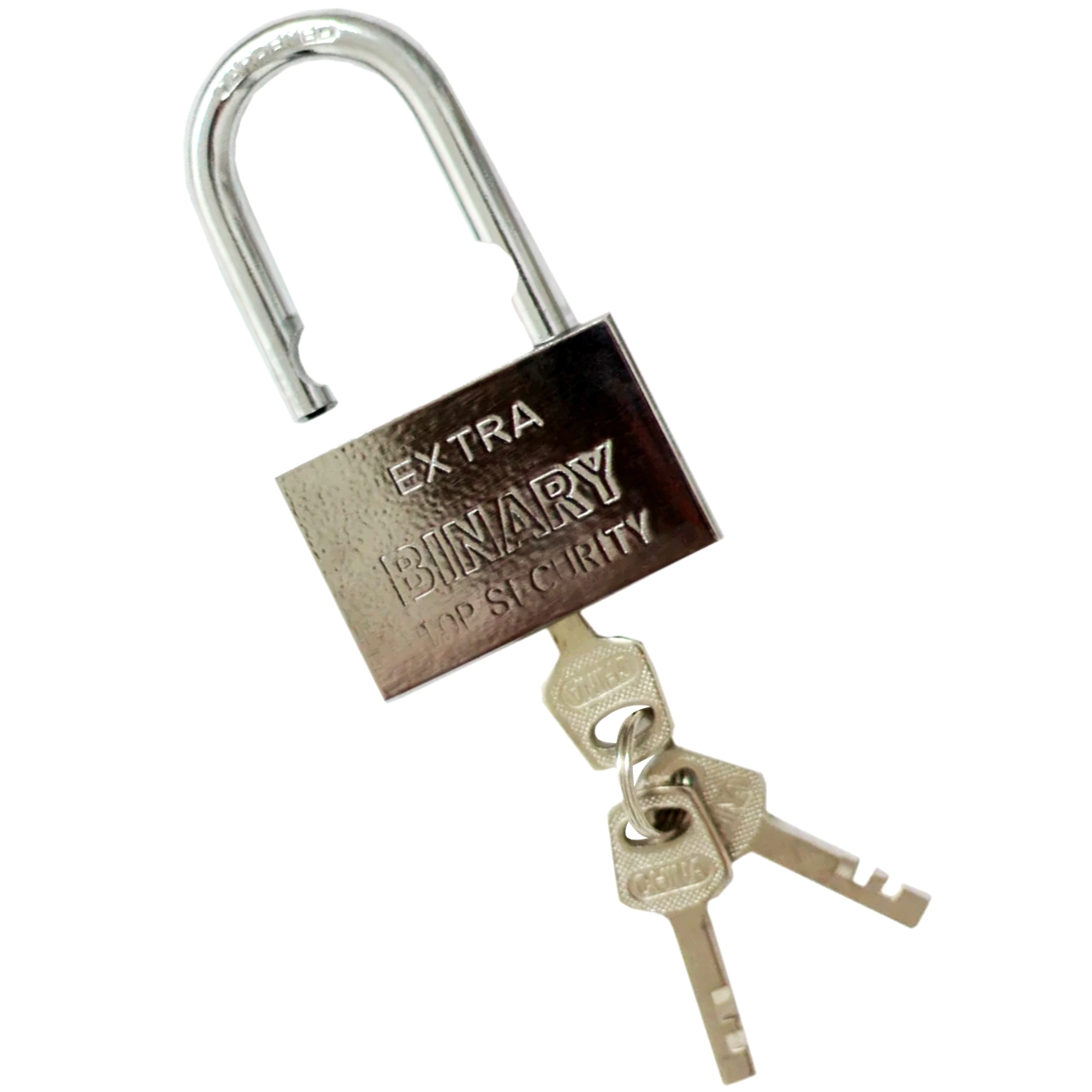 Финский замок навесного типа 60 мм «BINARY» из серии EXTRA имеет стальной корпус надежно защищенный хромированным покрытием, которое не ржавеет и легко очищается от грязи.