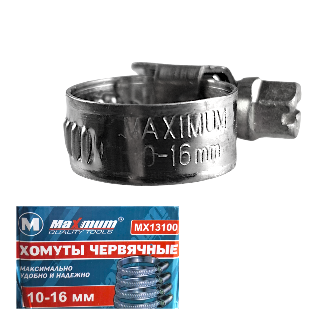 Хомут червячный 10-16 мм, нержавейка, 150 шт., "MAXIMUM" MX 13100