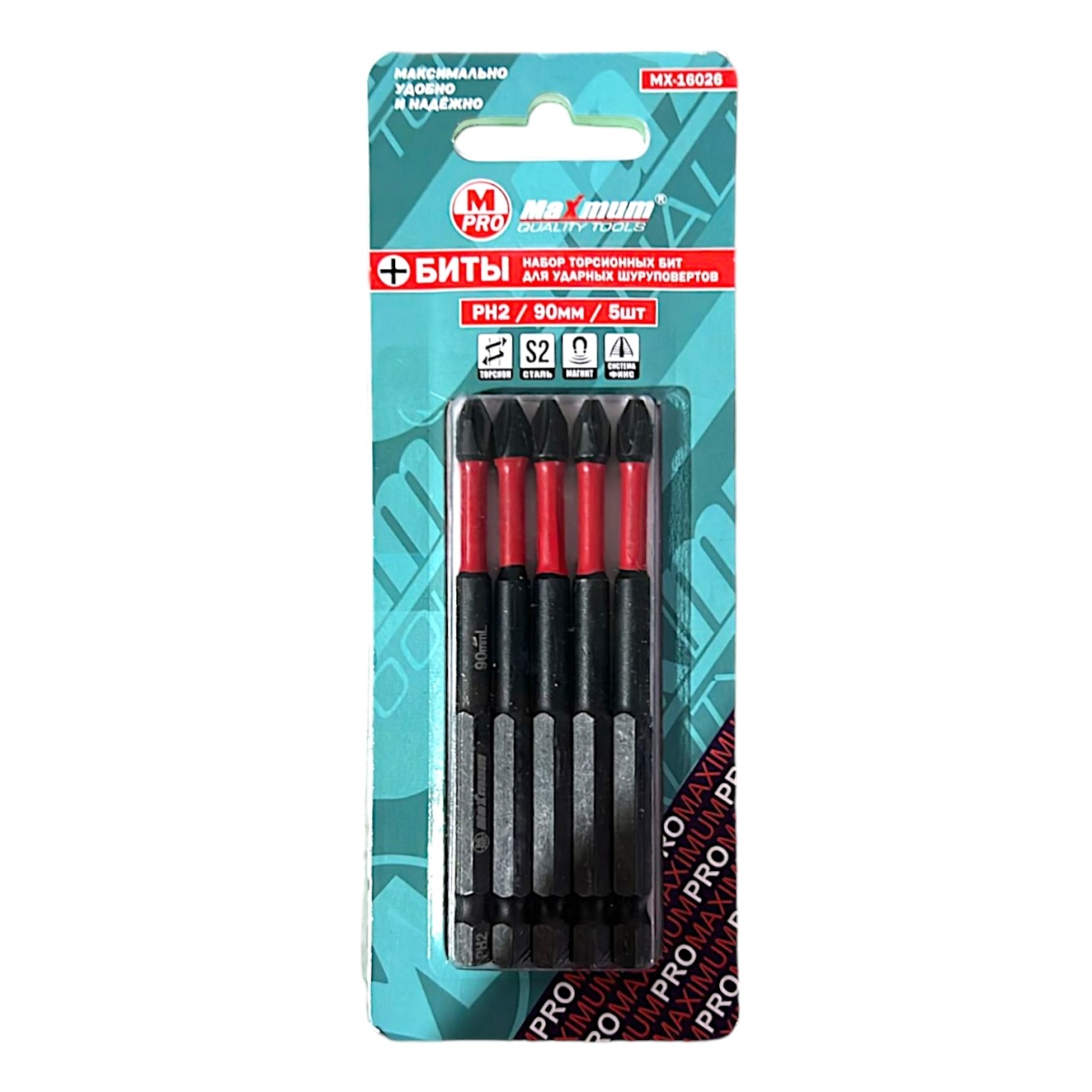 Набор бит торсионных для ударных шуруповертов PH2, 90 мм, S2, 5 шт., "MAXIMUM" MX 16026