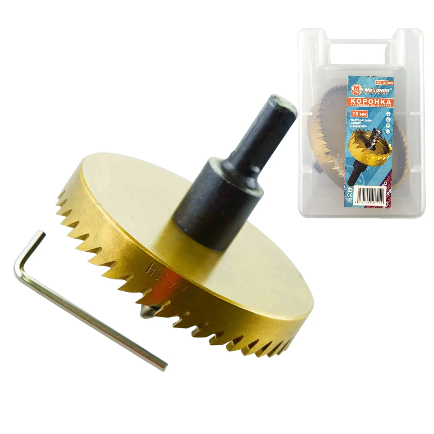 Коронки по металлу кольцевые от Maximum Quality Tools MX50 служат для профессионального применения совместно с дрелью. Данные сверлильные HSS коронки применяются в работе с нержавеющей сталью, алюминием, медью, чугуном, пластиком и сэндвич-панелями. Работа с коронкой отличается низким уровнем шума при работе, а также высокой скоростью и точностью. Сверхпрочная HSS (быстрорежущая) сталь делает конструкцию надежной. Комплектация:- коронка 75 мм,- хвостовик для крепления коронки,- пружина для удобного извлечения материалов,- центрирующее сверло (ц/с),- шестигранный ключ для болта крепящий ц/с,- пластиковый бокс.