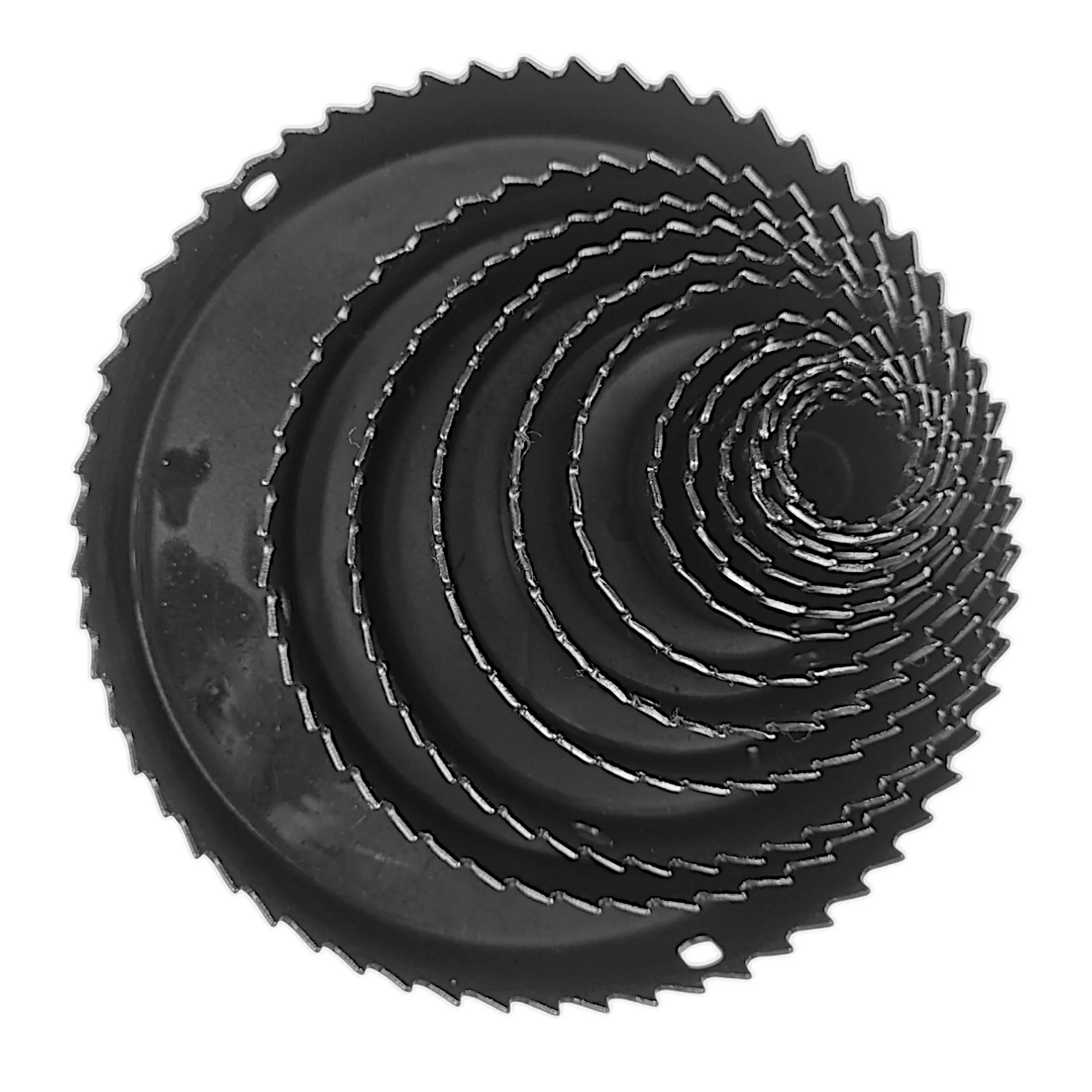 Набор кольцевых коронок по дереву используется совместно с дрелями для сверления отверстий диаметром от 19 мм до 127 мм в древесине различных пород, фанере, ДСП и гипсокартоне. Изготовлены коронки из углеродистой стали.