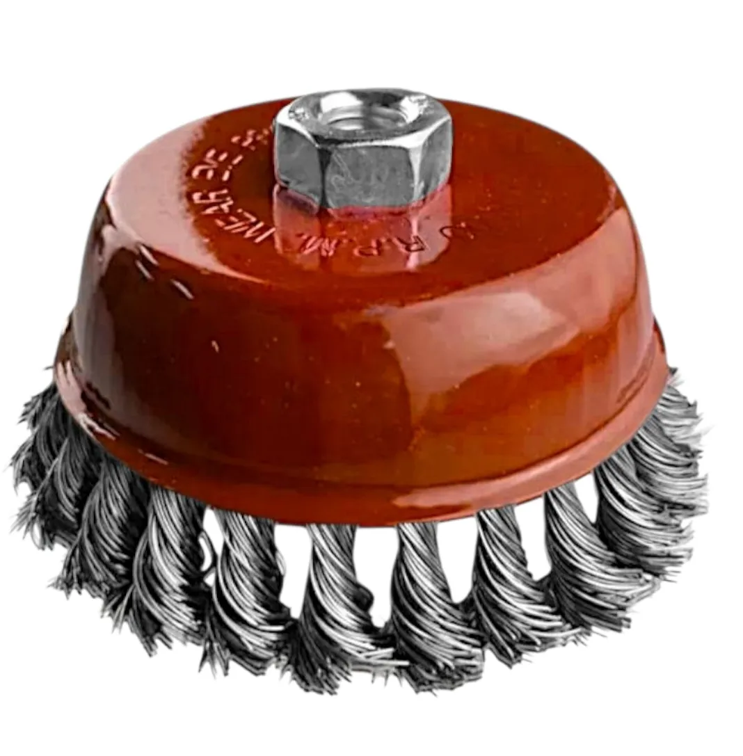 Корщетка 125 мм изготовлена термообработанной инструментальной стали, кручёная стальная проволока высокой прочности и не подвержена коррозии.