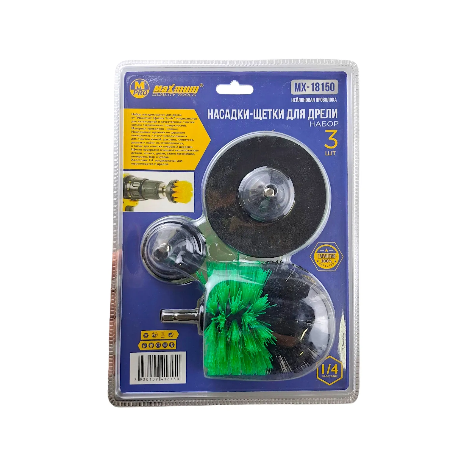 Комплект из трех нейлоновых щеток-насадок для дрели или шуруповерта с шестигранным хвостовиком 1/4". Нейлоновые щетки предназначены для эффективной и бережной очистки, удаления загрязнений, ржавчины и старой краски с различных поверхностей. Набор идеально подходит для использования в гараже, мастерской, на даче или при проведении домашних ремонтов.