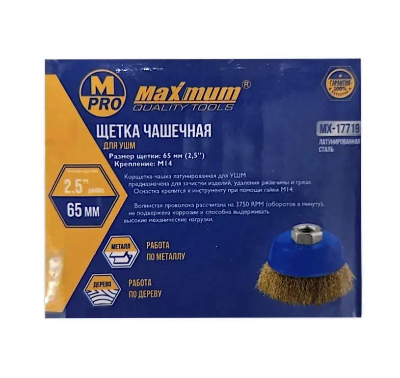 Щетка для УШМ чашечная 65 мм, 2,5", волнистая, латунированная, "MAXIMUM" MX 17719