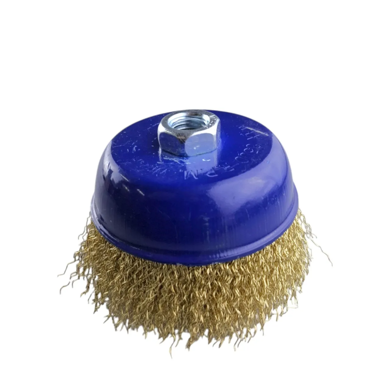 Чашечная латунированная корщетка 65 мм предназначена для установки на угловую шлифовальную машину (УШМ, "болгарку"). Она используется для интенсивной очистки, удаления стойких загрязнений и обработки больших площадей.