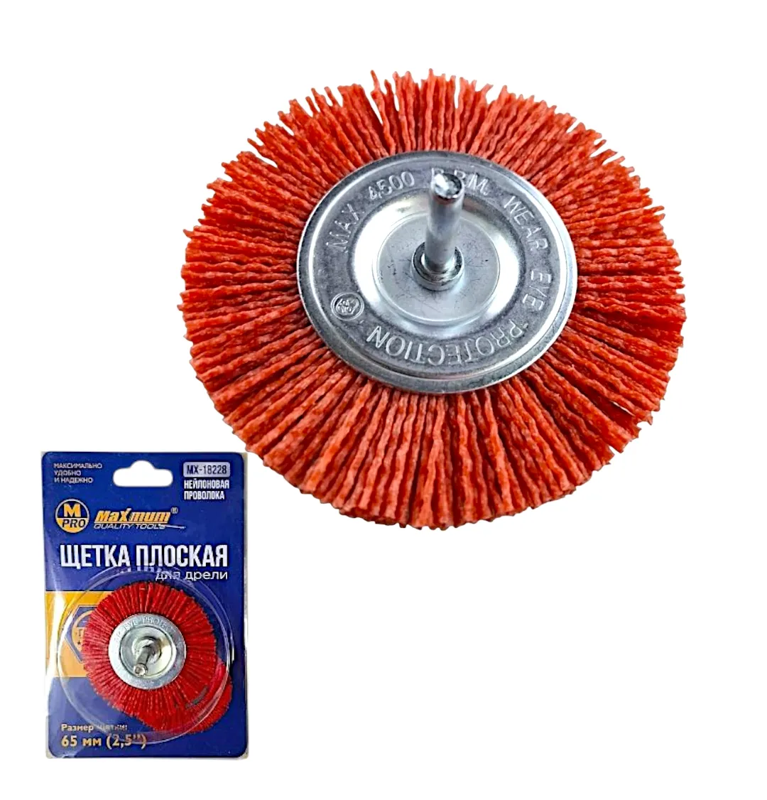 Насадка-щетка "MAXIMUM" с нейлоновой щетиной диаметром 65 мм (2,5") предназначена для деликатной, но эффективной очистки поверхностей. Идеальна для работы с дрелью или шуруповертом. Абразивные частицы в щетине обеспечивают агрессивную очистку без риска глубоких царапин, характерных для стальных щеток.