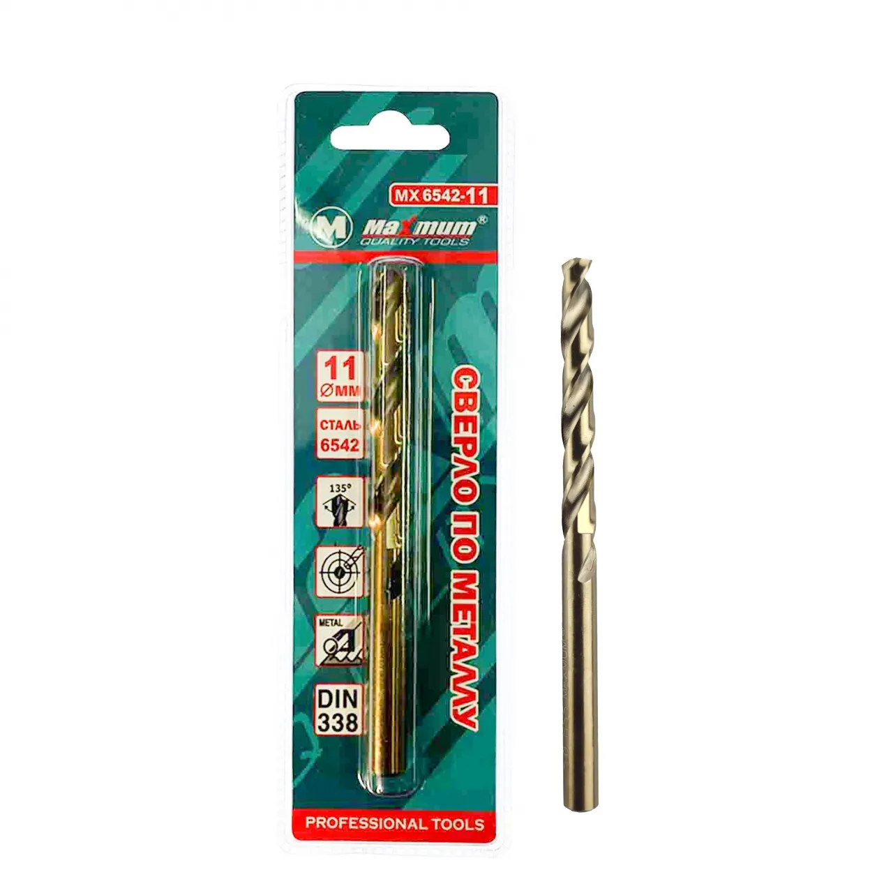 Сверло с титановым покрытием 11 мм из быстрорежущей стали предназначено для обработки металла и представляет собой витой стержень с остро заточенными двойными режущими кромками.