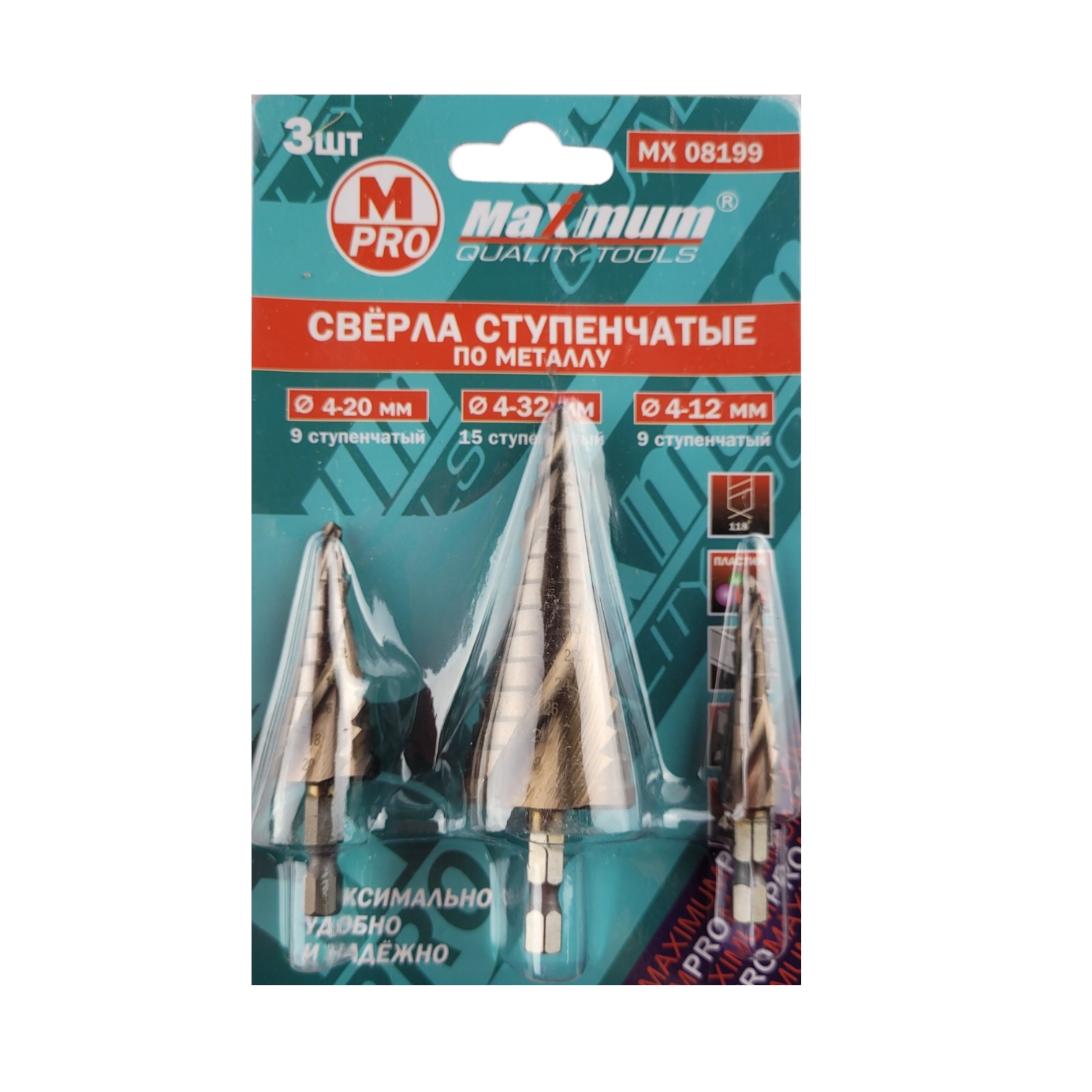 Набор сверл ступенчатых HSS по металлу 4-12мм, 4-20мм , 4-32мм, "MAXIMUM" MX 08199