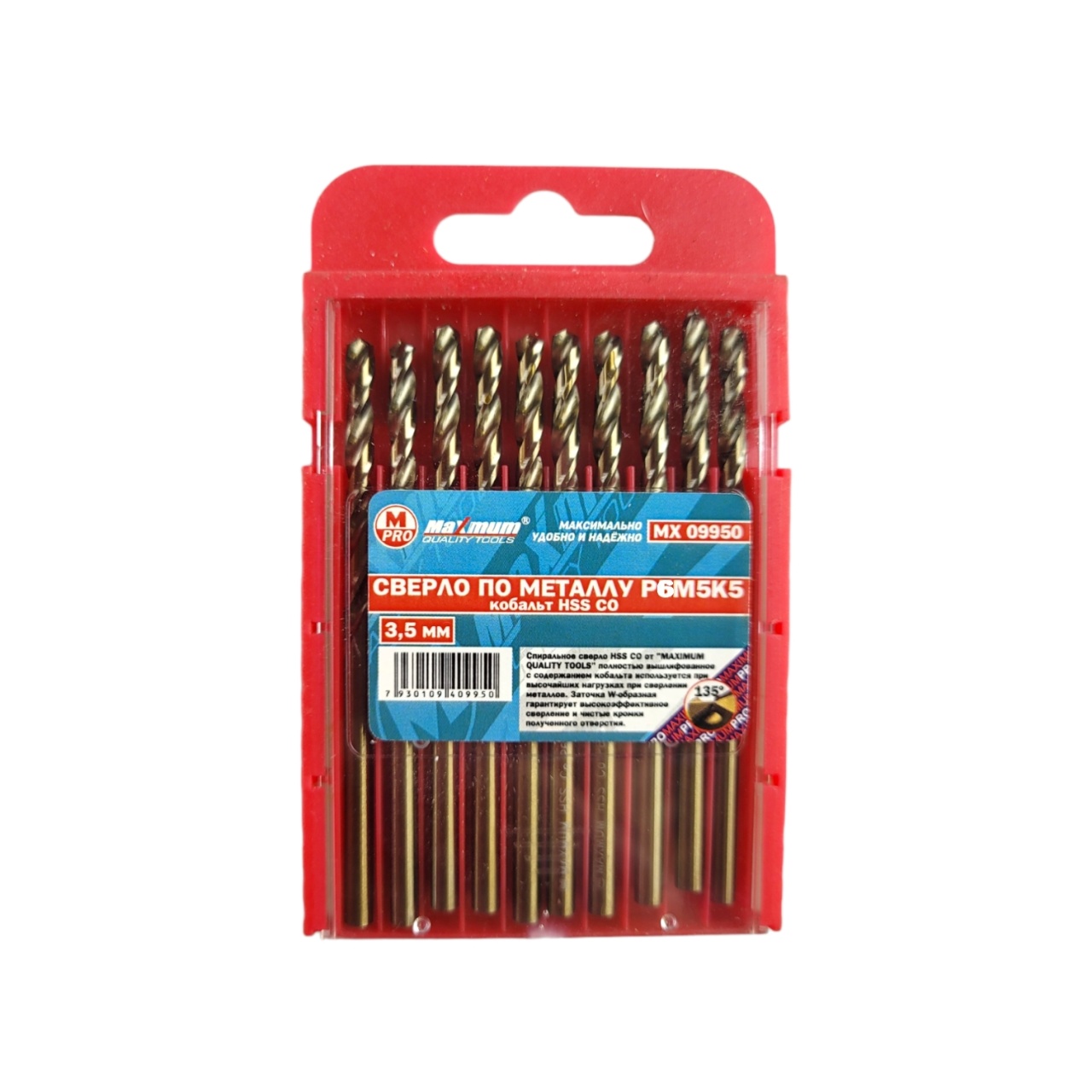 Сверла по металлу кобальтовые 3,5 мм, 10 шт., HSS CO, P6M5K5, "MAXIMUM" MX 09950