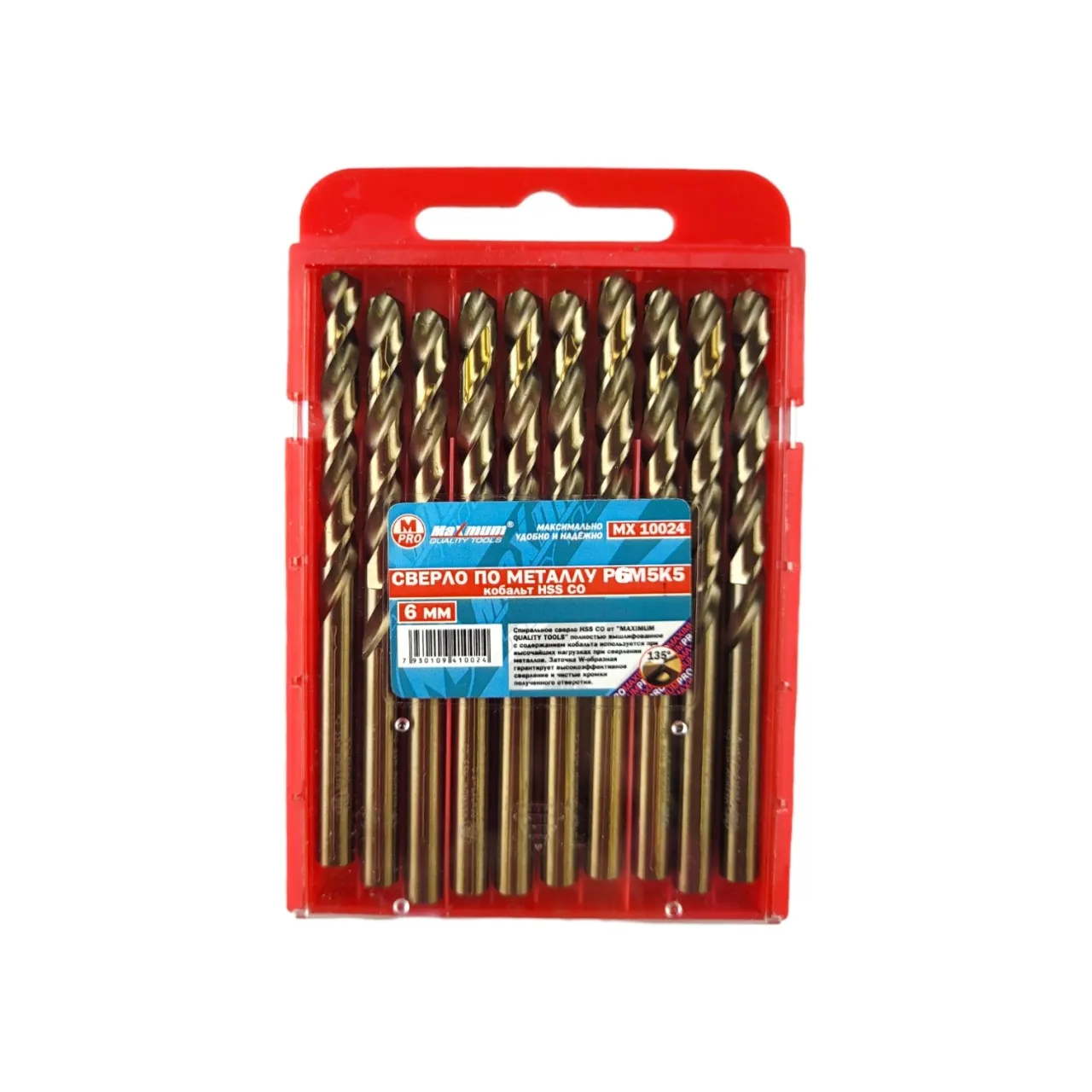 Кобальтовые сверла HSS по металлу 6 мм P6M5K5 от "MAXIMUM QUALITY TOOLS" из профессиональной серии имеют цилиндрический хвостовик и обладают высокой теплостойкостью и большим ресурсом режущих кромок. Общая длина: 88 мм. Рабочая часть 55 мм. Сверло кобальт HSS 6 мм имеет удобную маркировку фактического диаметра. Предназначено для получения отверстий различного диаметра в листовых материалах без перестановки режущего инструмента. Сверло изготовлено из быстрорежущей стали, благодаря чему служит длительное время и работает с высокой скоростью.