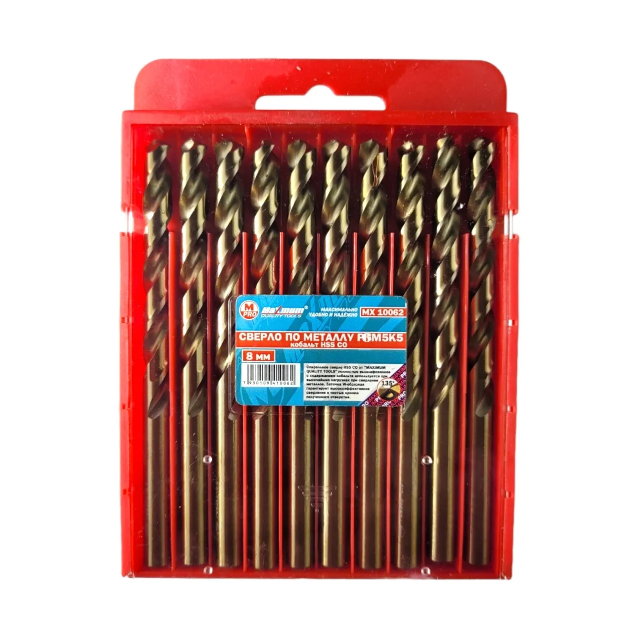 Сверла по металлу поставляются по 10 шт. в удобном пластиковом кейсе. Легко затачивается на алмазном круге или простом шлифовальном камне.