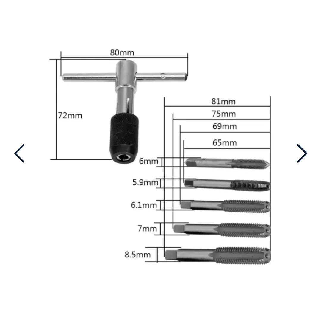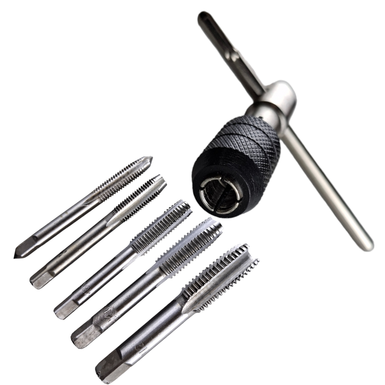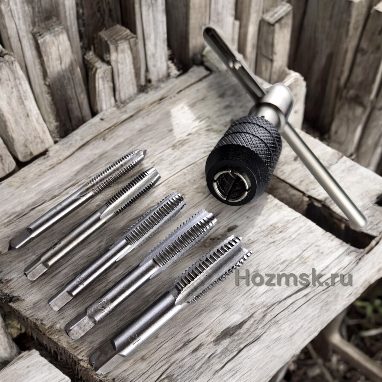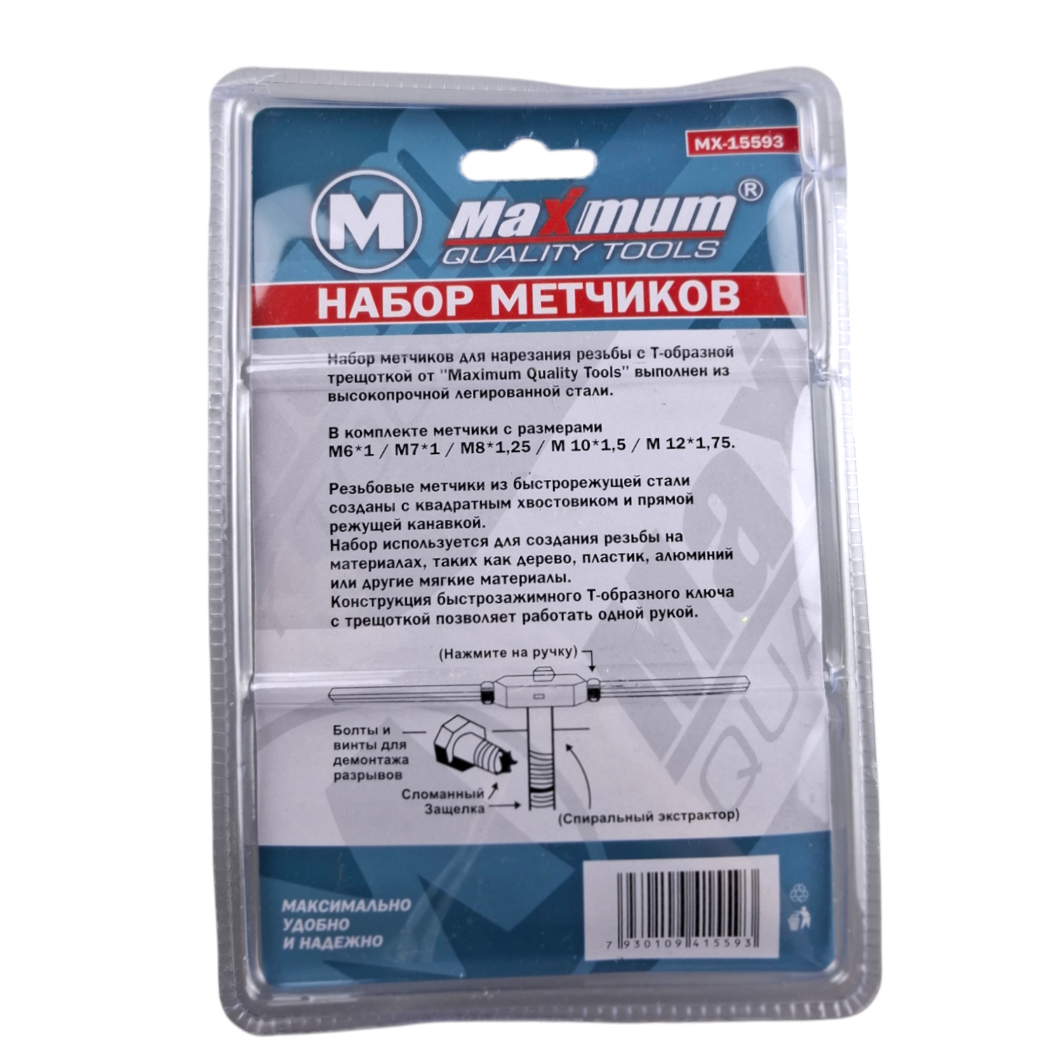 Набор метчиков М6-М12,6 с трещоткой, 6 предметов, легированная сталь, "MAXIMUM" MX 15593