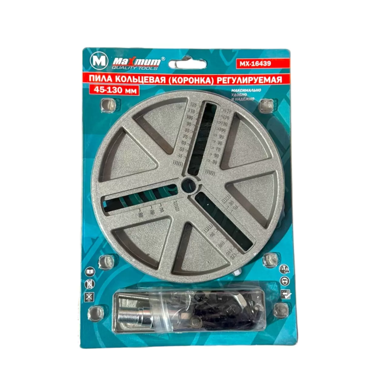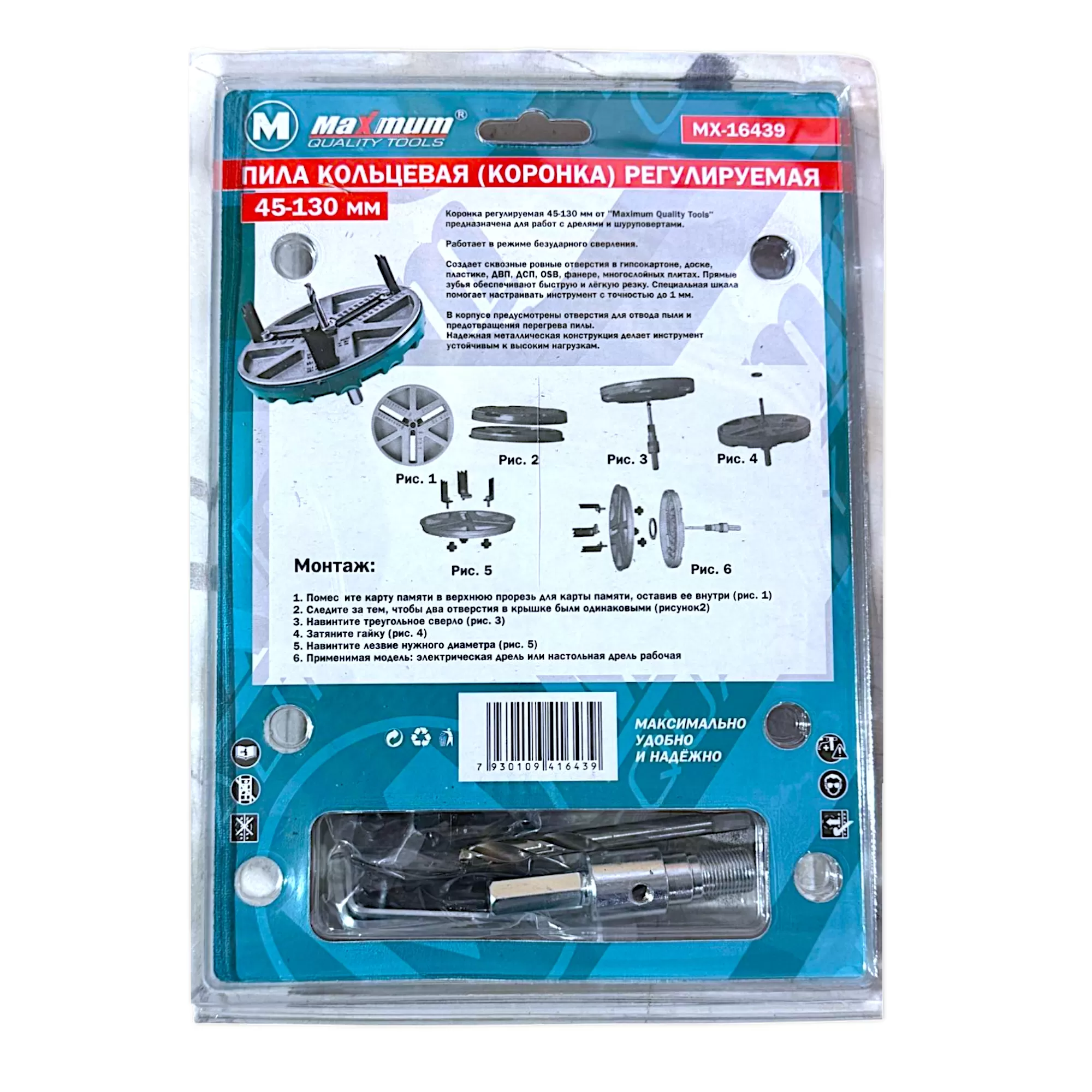 Пила кольцевая (коронка) регулируемая 45 - 130 мм по дереву, "MAXIMUM" MX 16439