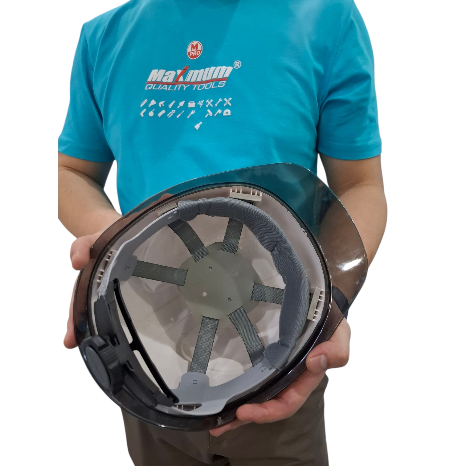 Каска строительная с козырьком создана для защиты головы от механических повреждений, влаги, брызг агрессивных жидкостей, искр и брызг расплавленного металла.